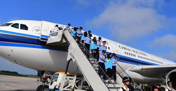 Chinese media and Radio NZ say pictures show the suspects were hooded and herded onto a chartered flight amid high security last night.