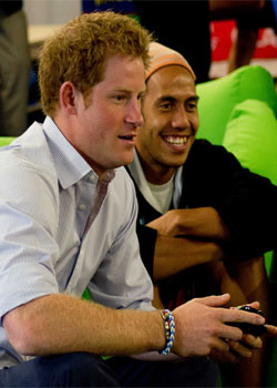 Leslie and Eugene were relaxing in the Athletes' Lounge, when the Royal party visited. Prince Harry headed straight over to the TV screens and joined the two Fijians for a quick game of FIFA.
