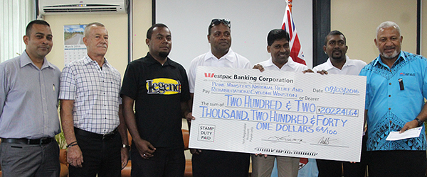 CFL’s General Manager, Ian Jackson presented the cheque to Prime Minister, Voreqe Bainimarama, on behalf of all the listeners who came forward and donated to the Cyclone Winston Radio Appeal.