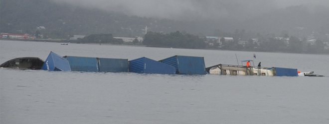 A container ship, Southern Phoenix has submerged in the Suva Harbour.