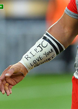 Masoe also had a message "R.I.P. JC. Love you brother" onto the tape on his lower right arm for the match.