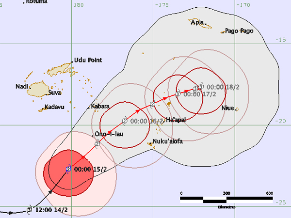 The Nadi Weather Office says on this track, the cyclone is expected to be located about 65 kilometres South South East of Ono-i-Lau at midnight tonight.